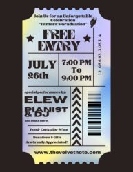 Wednesday, July 26th: Tamara’s Graduation Party (Pssst…You’re Invited!) *** SOLD OUT!! SOLD OUT!! SOLD OUT!! ***